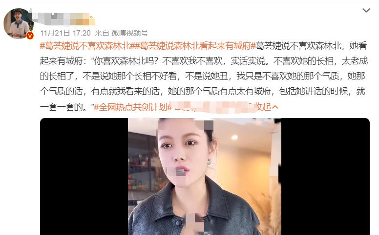 被网友问及是否喜欢森林北,葛荟婕直接回答“不喜欢”。