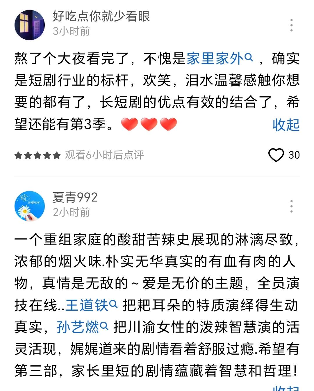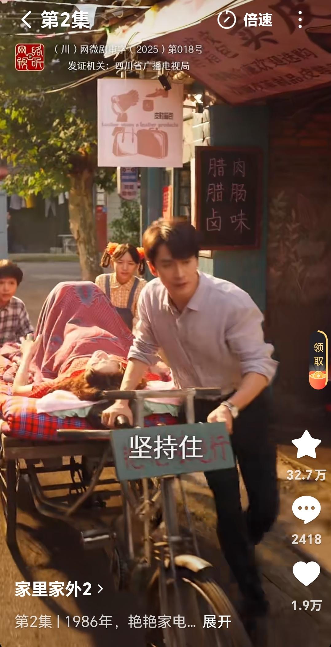 12月4日,在四川立项、成都拍摄的现象级微短剧《家里家外》续作——《家里家外2》上线,开播后迅速在网络掀起热议,#家里家外2#的相关词条登上热搜。不少观众点赞“笑中带泪”、“充满生活烟火味”,感叹“生活就是这样有苦有笑”。