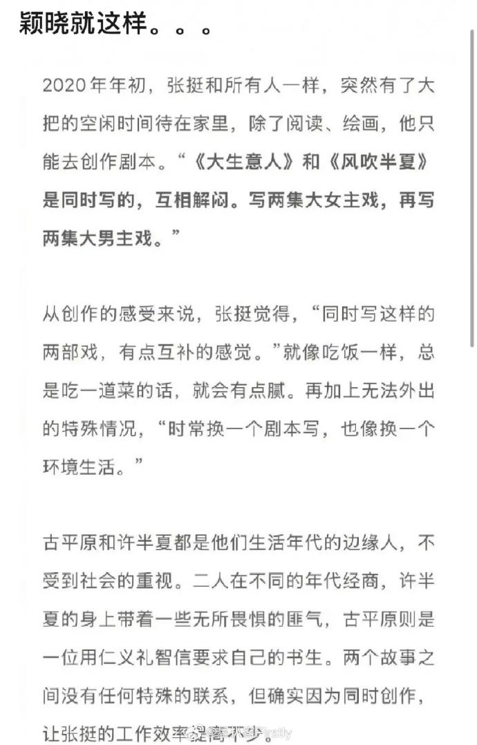 但是很遗憾,同时写的两部剧,先播出几年的《风吹半夏》和才播出的《大生意人》,看似热度差不多,其实口碑反馈差距很大。《风吹半夏》算是成功了,而《大生意人》则高开低走翻车了。