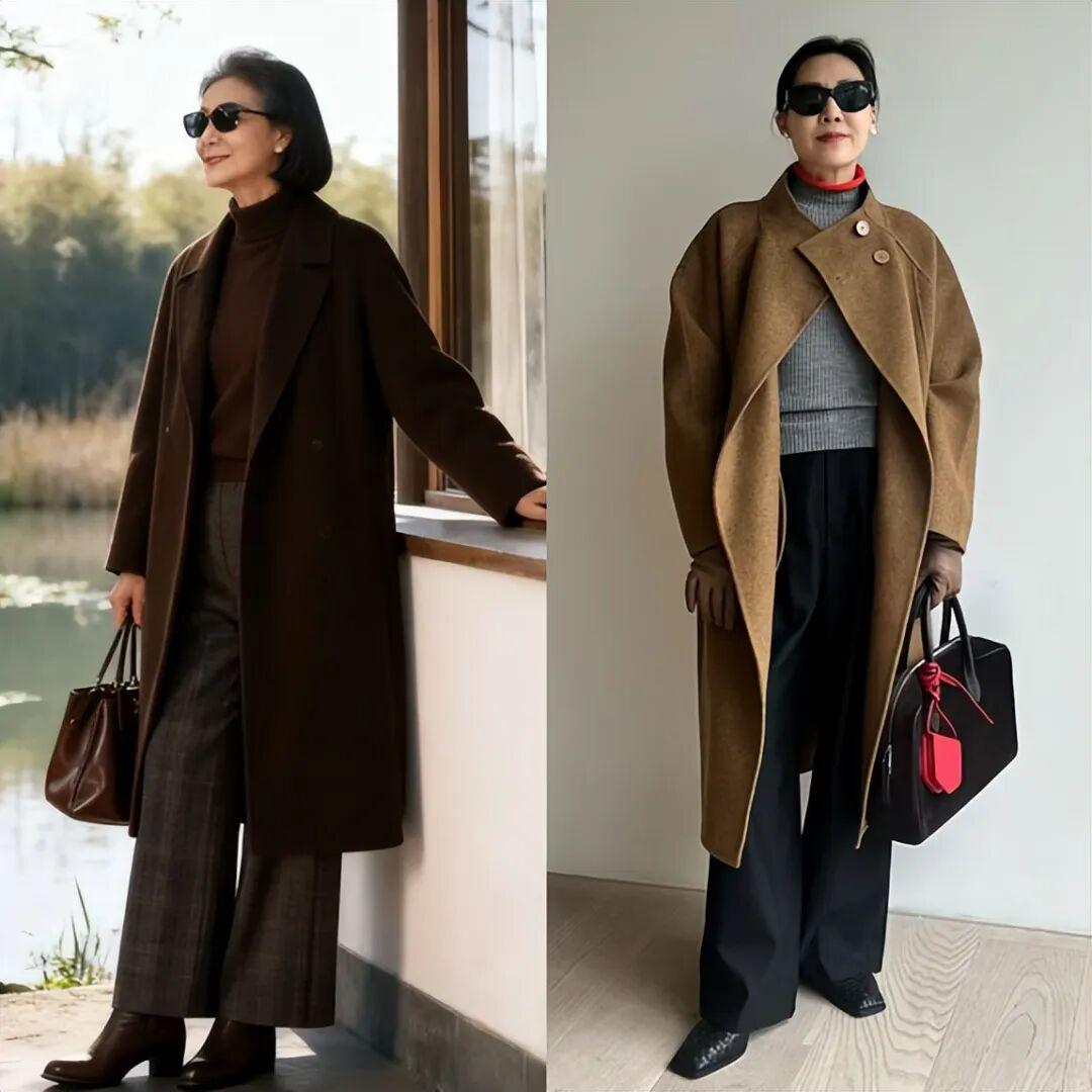 上衣可以选H型或X型的,H型简洁大气,适合身材匀称的女人,X型能突出腰线,让身材更有曲线感,比如收腰大衣、修身针织衫,都能展现成熟女性的曼妙身姿。