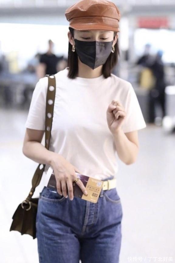 如果你担心这种白色T恤和牛仔裤的搭配太单调,可以和李沁学习戴帽子,头顶上搭配着这种棕色的贝雷帽就能够呈现出一种复古的感觉,而且剪了短发之后的她看上去气质相当的清爽,简直是美出新高度。