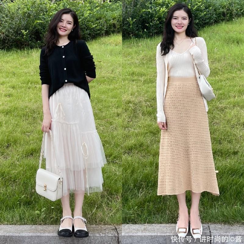 特别设计的奶奶衫,如带有V字领口或者不对称下摆的款式,也非常适合与奶奶裙配搭。这些设计细节不仅可以增加服装的独特性,还能在视觉上起到“瘦身”效果。