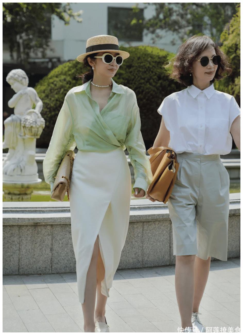 这个春夏季节,衬衫是少不了的,可以选择浅绿色衬衫和奶白色的开叉半身裙组合搭配,这就能轻松散发出你的女性魅力;如果你想要干练利落的穿搭风格,你像三木妈妈的穿搭造型,