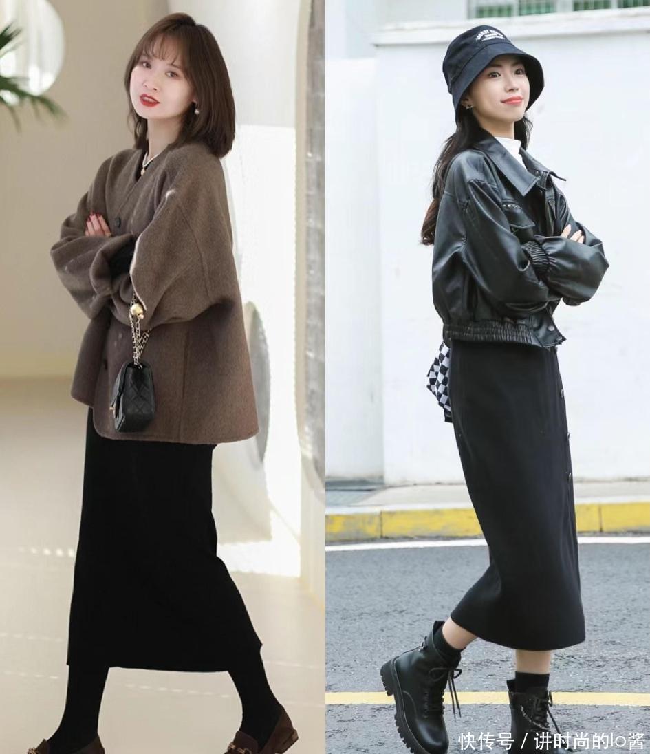 穿法(1)裙子搭配“低跟长靴”,更能打造出又美又飒的风格
