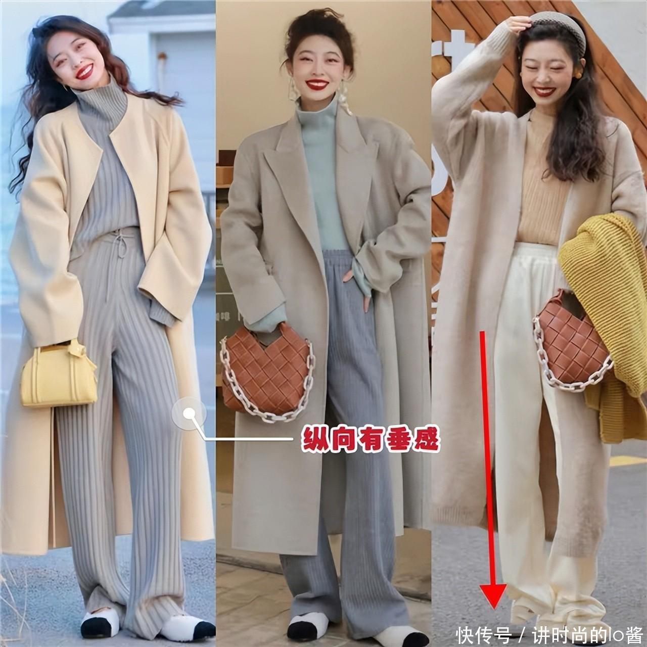 搭配公式【1】大衣搭配“针织裤”,舒适还很有气质