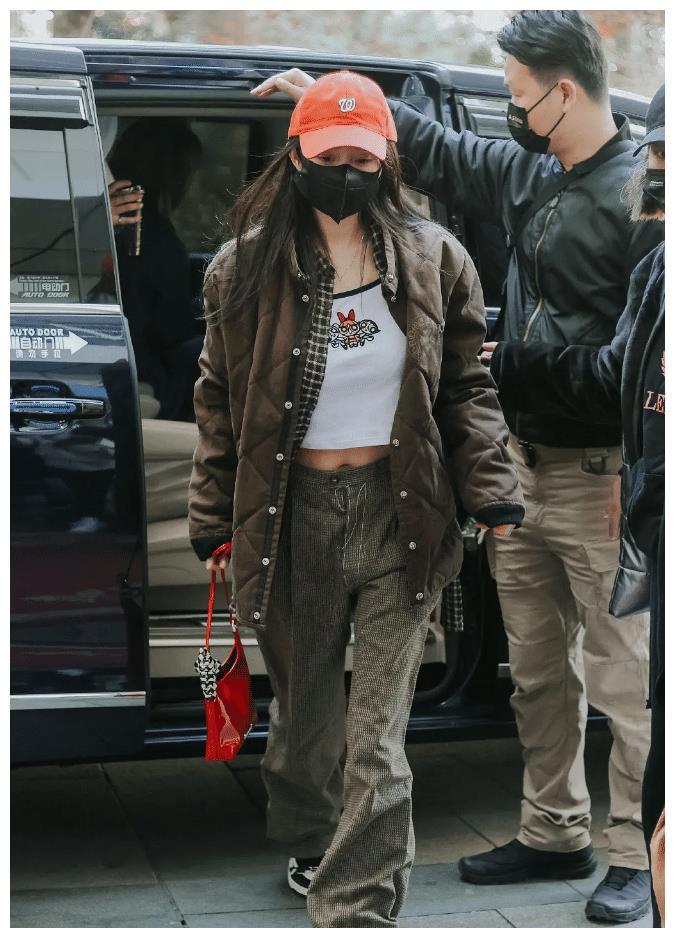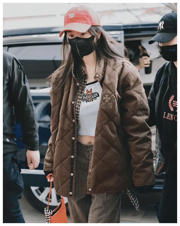 杨幂这身造型选择了菱格纹绗缝棉服作为外套,宽松的廓形可以为叠穿提供很大的空间,中间层选择了格纹衬衫,既增加了层次感,最内层白色露脐吊带,既提亮了色调,又展现了小性感。这种“外面冬天,里面夏天”的叠穿方式,既显身材又不失温度。