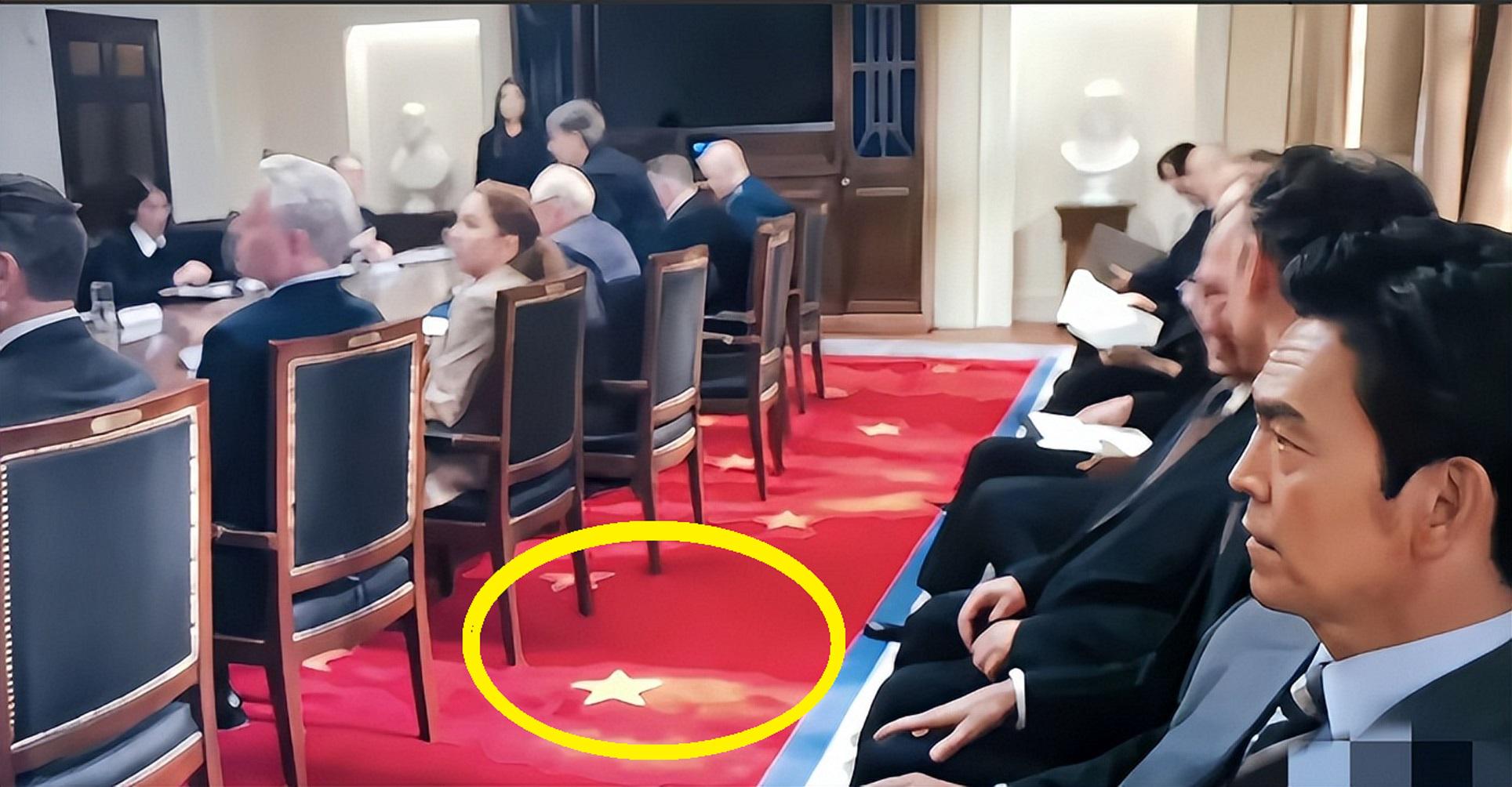 地上铺的毯子是红色的,最让人气愤的是,地毯上有黄色五星的标志。