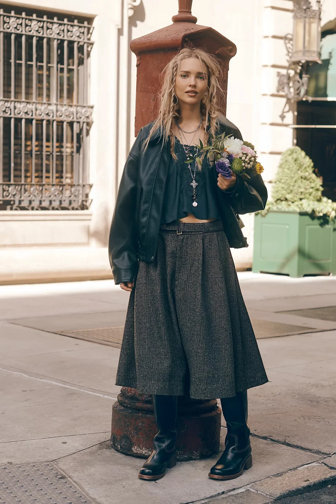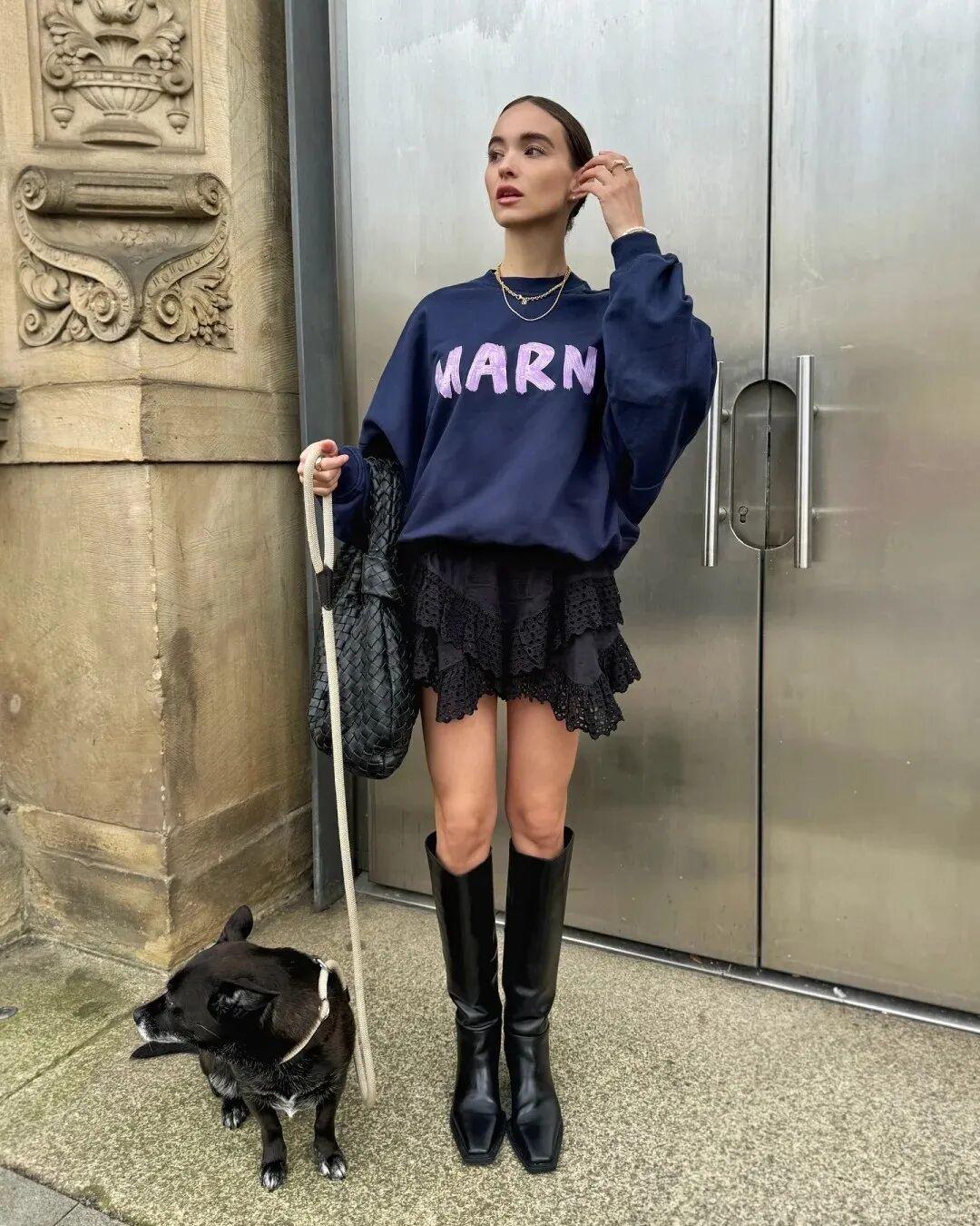 秋季穿迷你裙可搭配长靴或长袜,