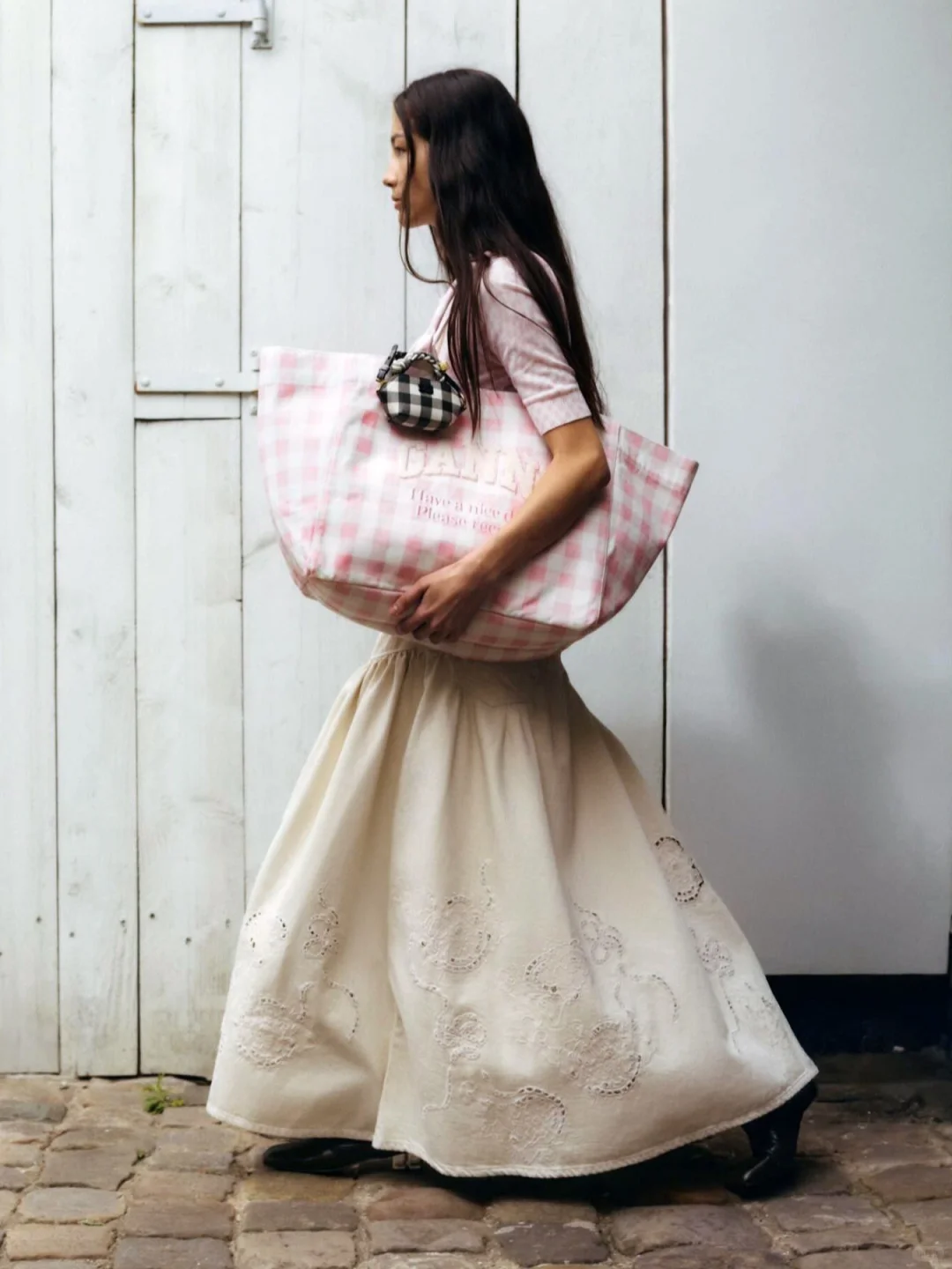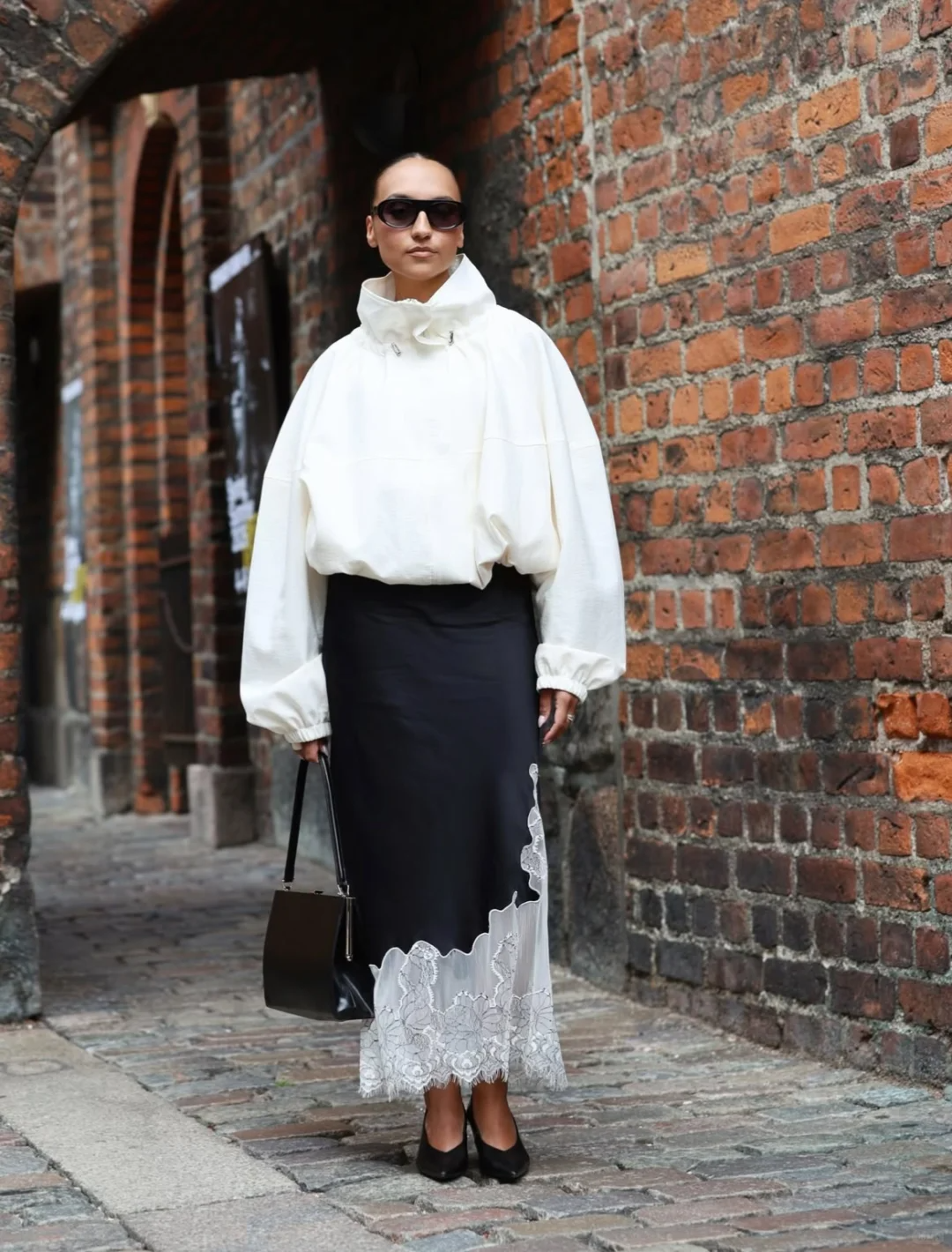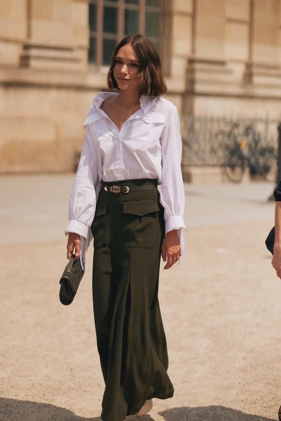 将衣摆塞进裙腰更显比例,
