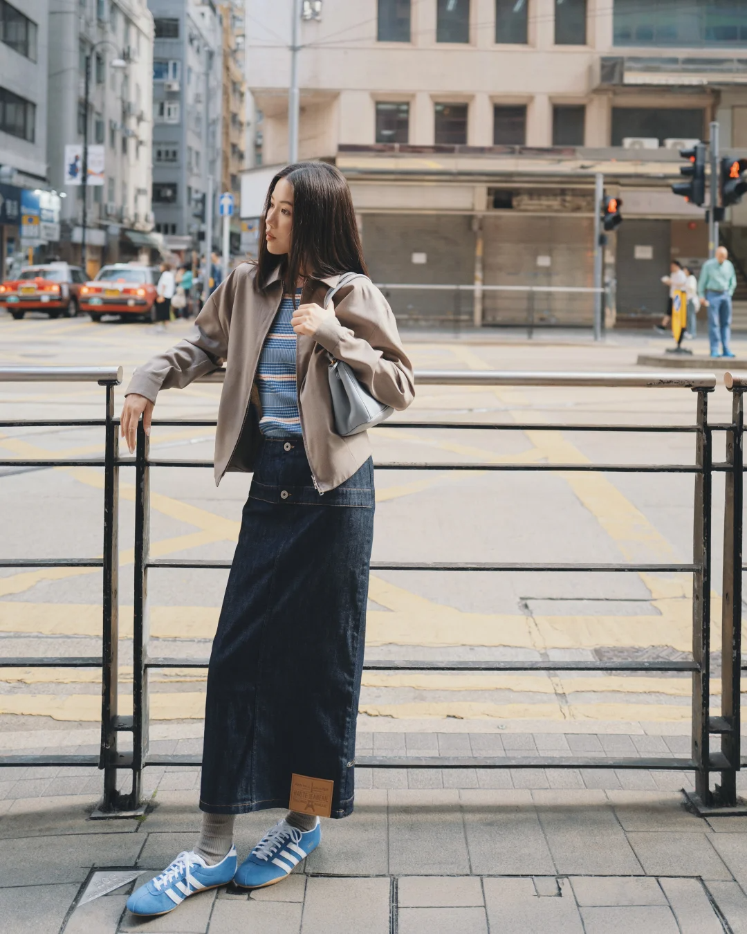 配上一双马丁靴或运动鞋,强化休闲感;