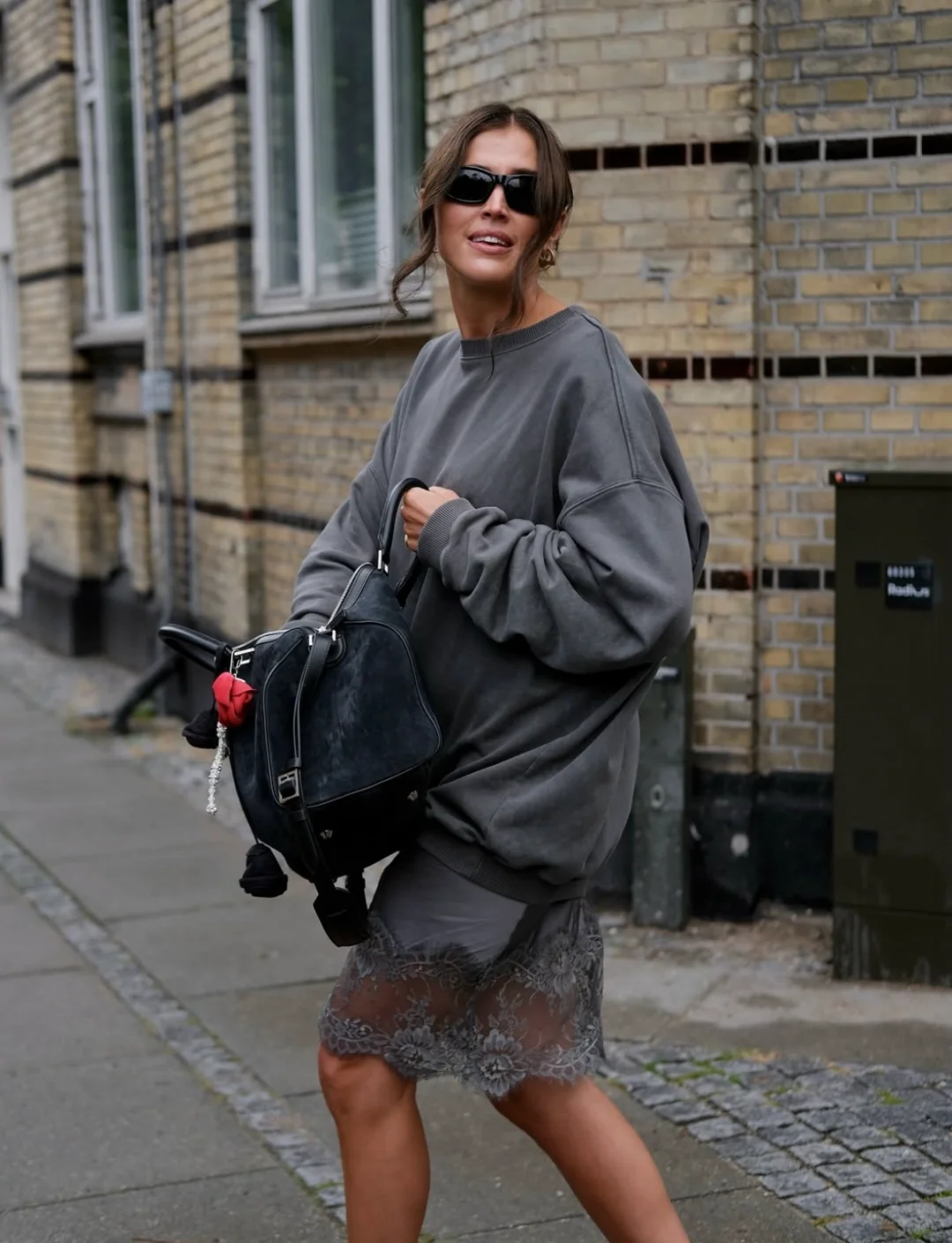 上身选择宽松毛衣或卫衣,