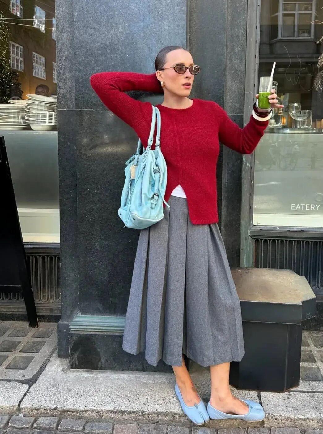 针织+半裙,秋天最经典搭配,好看又减龄!