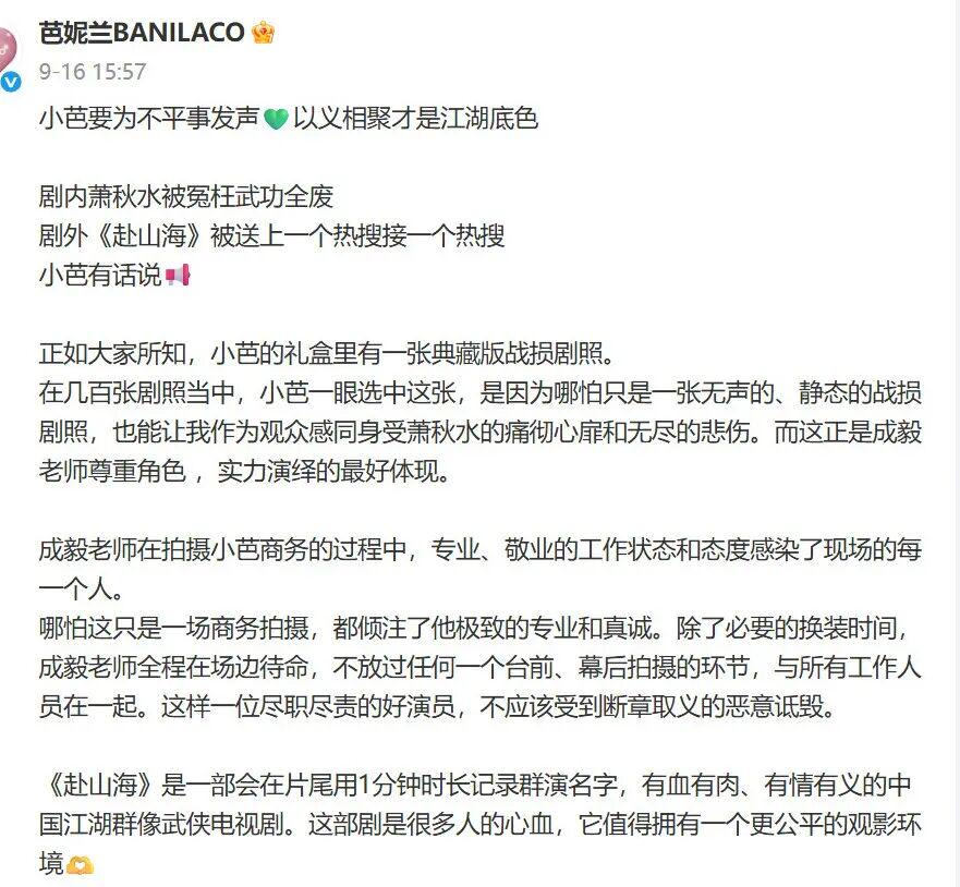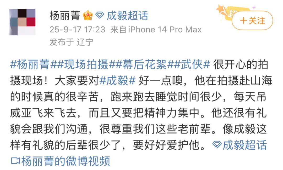还有合作演员力挺主演,说希望大家对成毅好一些。