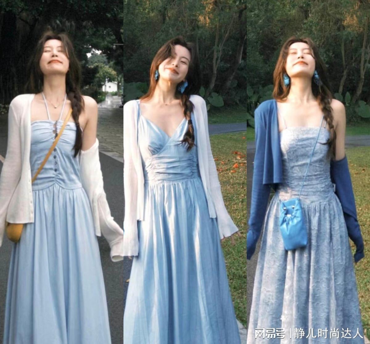 像白色的开衫,基本上可以搭配所有的单品,很多女性会选择利用裙子相配,那么就可以采用一些清爽的蓝裙子加入其中,用蓝白配色,谱写出很小清新的风采。
