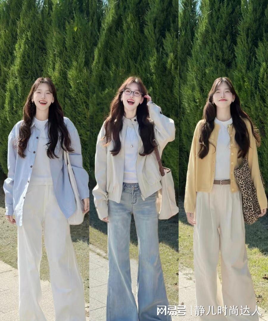 下面这些就是很适合秋季的穿搭,运用一些常规的单品做外套,在裤子选择上,尽量穿宽松的款式,舒适又大方。