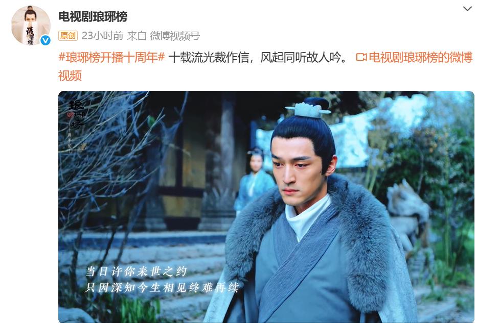9月19日,是《琅琊榜》开播10周年纪念日,主演们纷纷发文,胡歌用梅长苏的声音旁白响起“浮云一别,竟是十年”,很多人泪奔。仿佛又回到了10年前追剧的日子。