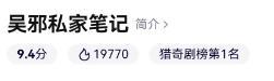 剧集开局就爆,一上线就拿下平台悬疑剧榜第一,一小时热度达19770。平台评分高达9.4分。
