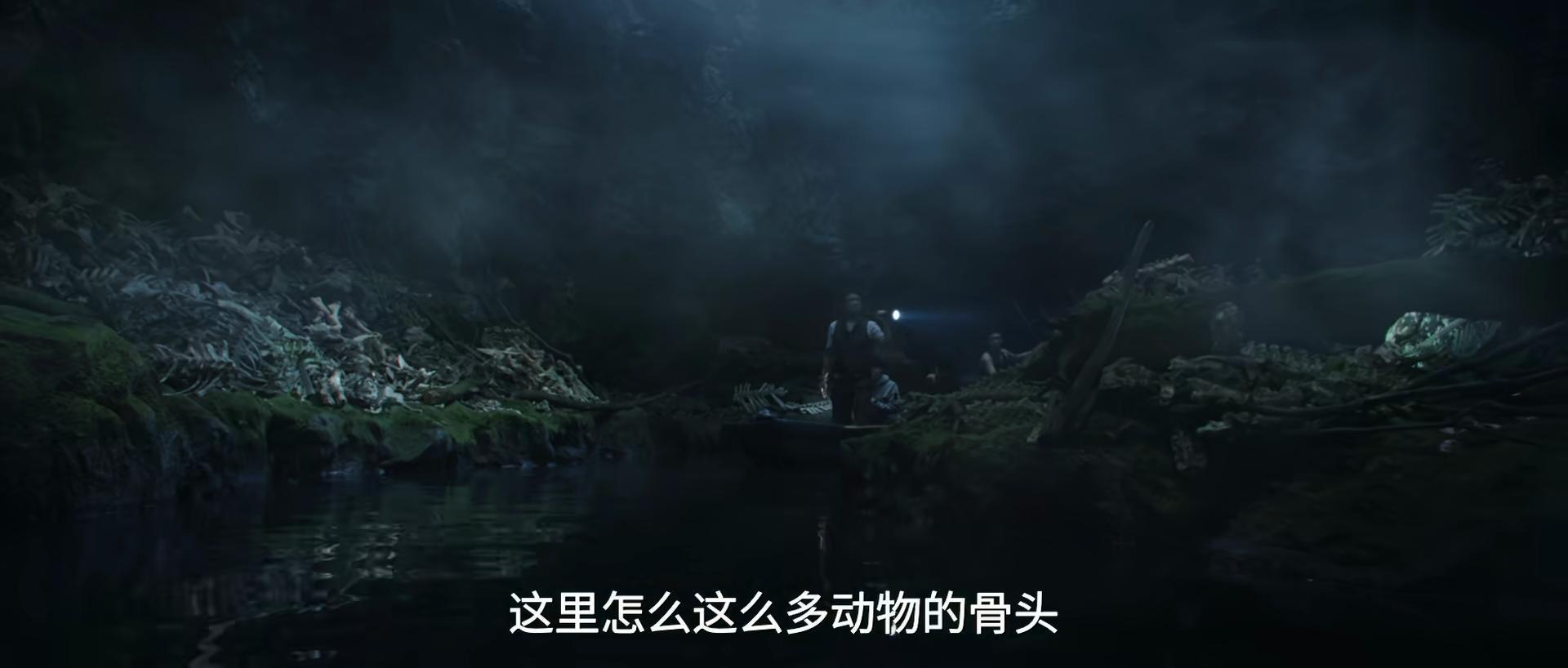 神鼎山中,探险队船入黑洞,四周的动物尸骨堆积成山,气氛诡谲,令人不寒而栗。