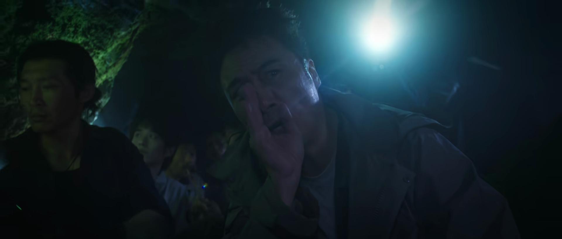 而随着向导被神秘生物拖进洞穴,众人接力营救下,全部坠入洞穴中,